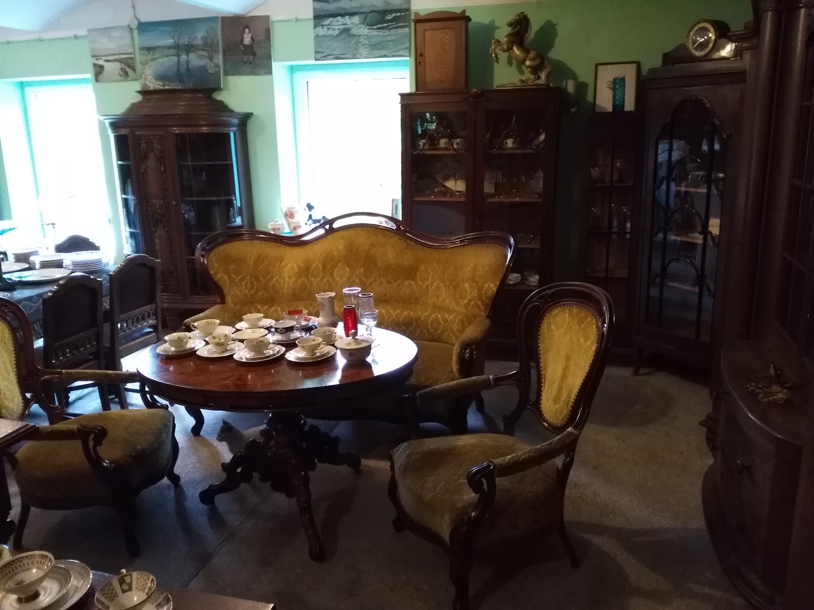 Prezentowany zestaw to komplet mebli do salonu bądź dużej jadalni. Są to bardzo reprezentacyjne meble. Wyroby te powstały jak już wspomniałem na początku XX wieku, zrobiono je z użyciem drewna dębowego. W skład całego zestawu wchodzi serwantka, bufet oraz stół z sześcioma krzesłami.